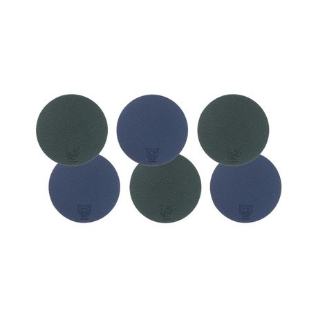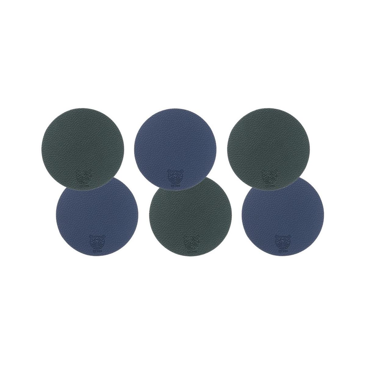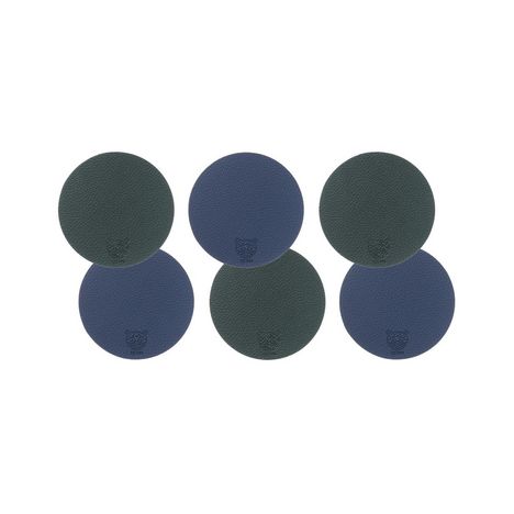 Sous-verre rond réversible - 6 pièces - Cuir recyclé bleu nuit et gris anthracite