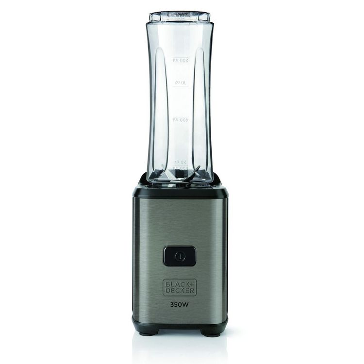 Black+decker BXJBA350E Blender individuel Black & Decker BXJBA350E permet de préparer de délicieux smoothies et jus à emporter n?importe où, grâce à son pratique bouton-poussoir et à ses deux récipients transportables de 600 ml.