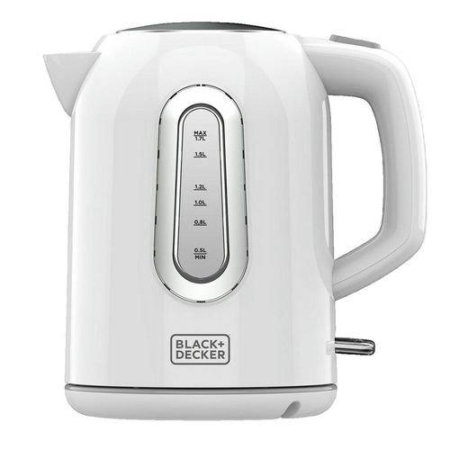 Découvrez la bouilloire électrique Black+Decker BXKE2204E, idéale pour votre cuisine. Avec une capacité de 1,7 litre et une puissance de 2200 W, elle chauffe rapidement l'eau. Son élément chauffant dissimulé facilite le nettoyage. La base rotative et l'indicateur de niveau d'eau apportent une grande