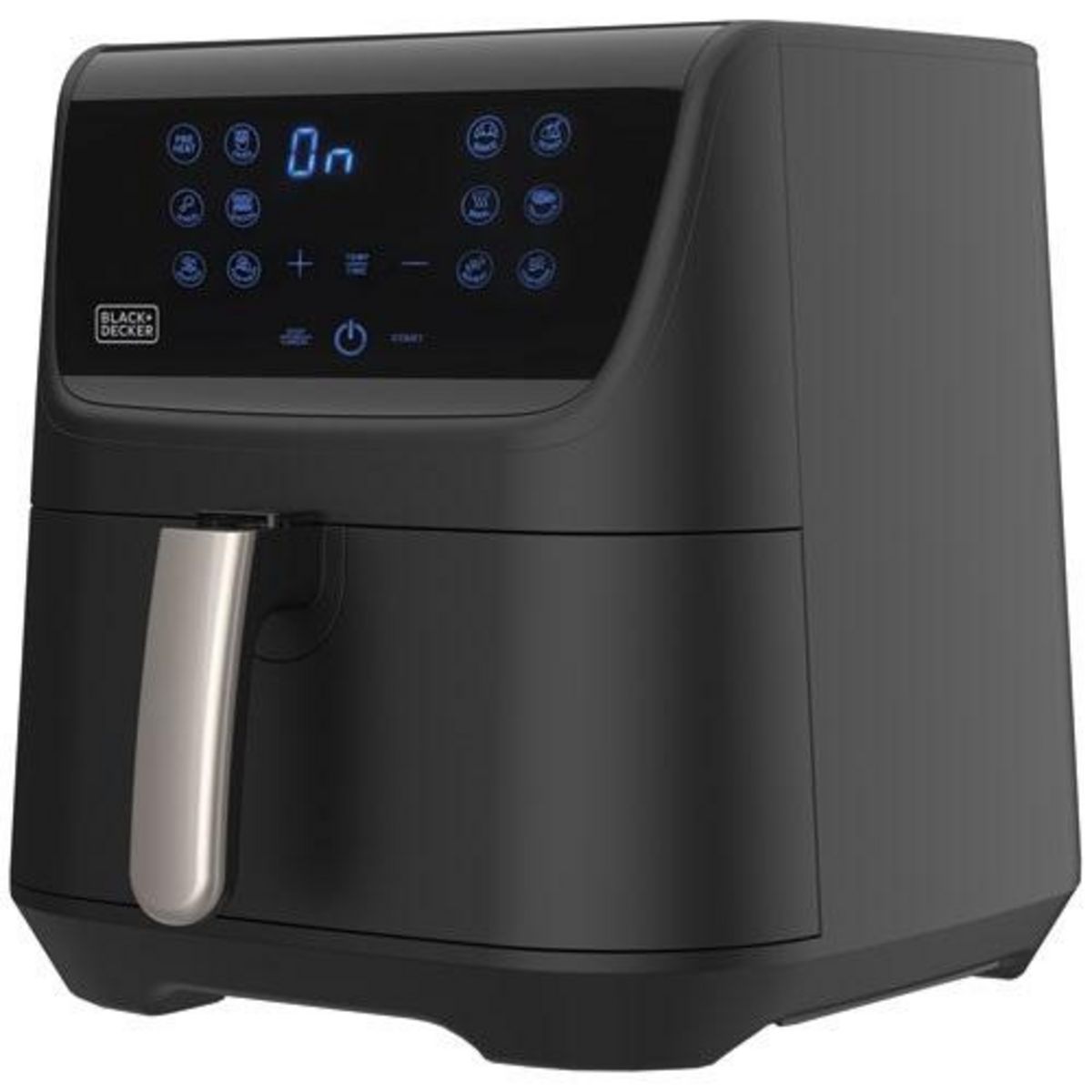 Black+decker BXAF5500E La friteuse sans huile BXAF5500E de Black et Decker a une puissance de 1800 Watts, avec une capacité de 1200 grammes de frites, soit 7 à 8 personnes. Elle bénéficie du système Rapid Air Circulation pour une cuisson rapide des aliments avec une économie de temps et d'énergie. Elle est équipée de 12 programmes de cuisson prédéfinis, d'un sélecteur de température de 80 à 200°C, les parois et la poignée sont froides et d'un écran tactile. Cette friteuse à air possède une minuterie jusqu'à 60 minutes et la cuve et le panier sont lavables au lave-vaisselle.