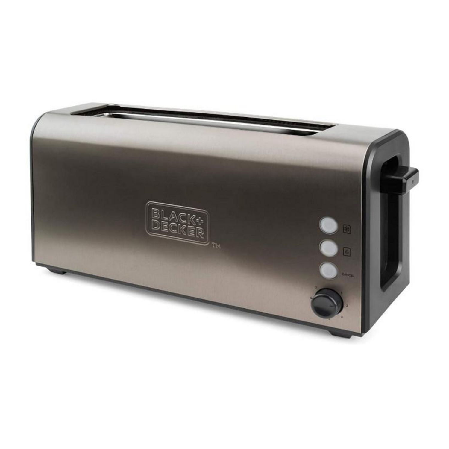 Black+decker BXTO1000E Grille-pain Black & Decker BXTO1000E doté d'une fente ultra-large avec auto-centrage du pain, pour une grande ou deux petites tranches de pain. - Type de produit : Grille-pain.Puissance : 1 000 W.7 niveaux de grillage du pain.Corps robuste en acier inoxydable.Nombre de fente :