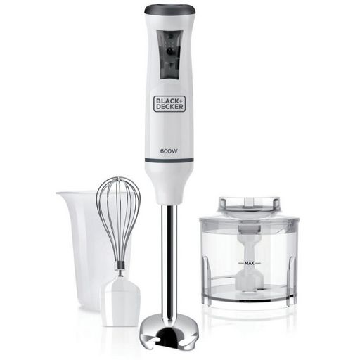 Black+decker BXHBA600E Mixeur plongeant Black & Decker BXHBA600E polyvalent pour mélanger, hacher et émulsionner. Doté de 2 lames résistantes de haute performance en acier inoxydable.