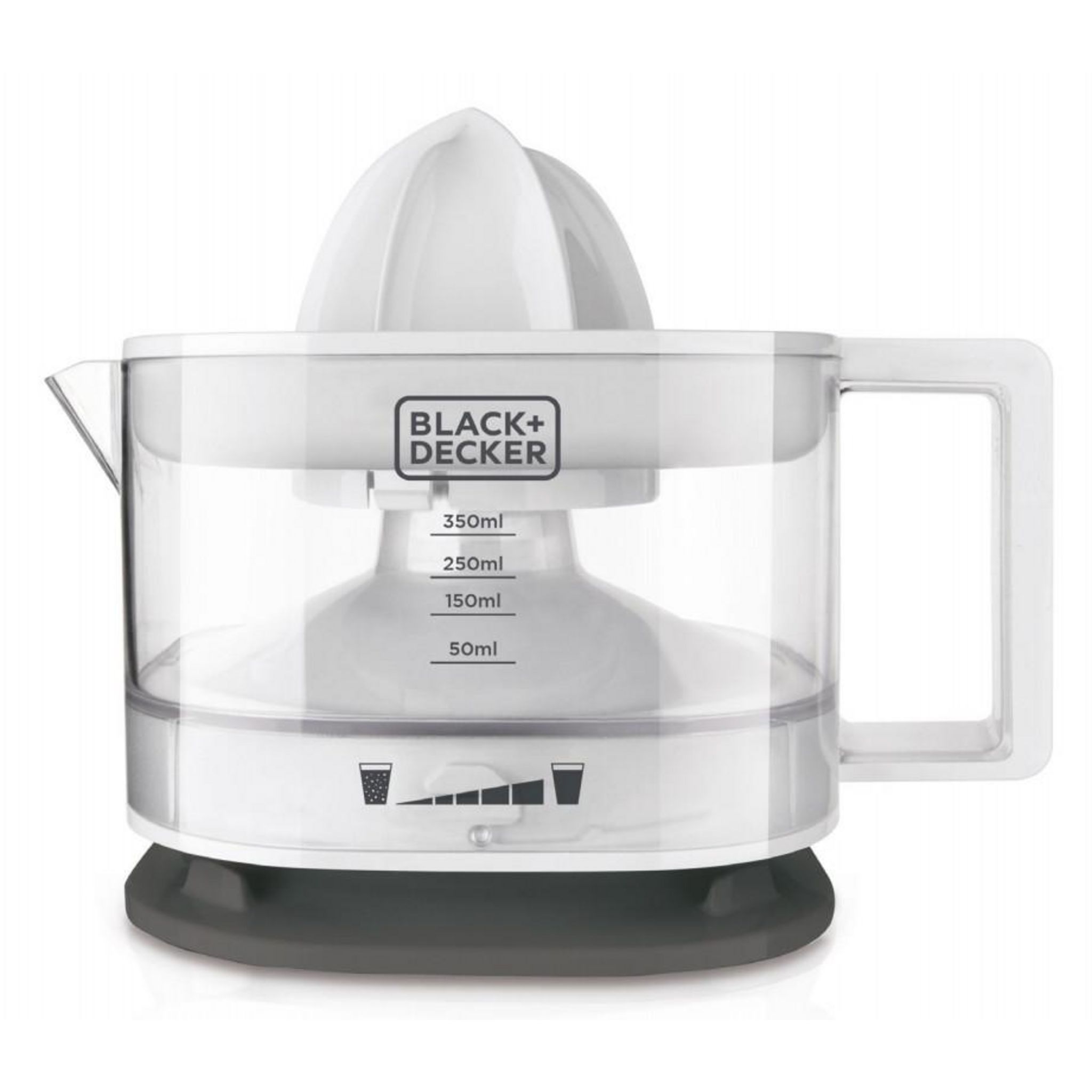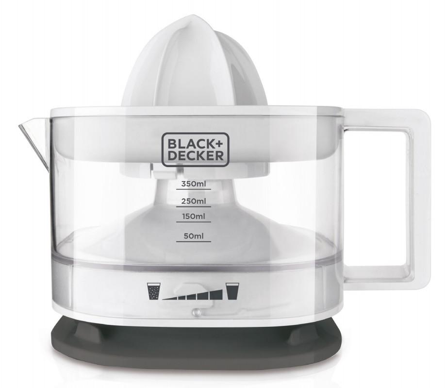 Black+decker BXCJ25E Presse-agrumes Black & Decker BXCJ25E design compact avec pichet transparent gradué. Le BXCJ25E est entièrement démontable pour un nettoyage au lave-vaisselle.