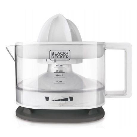 Black+decker BXCJ25E Presse-agrumes Black & Decker BXCJ25E design compact avec pichet transparent gradué. Le BXCJ25E est entièrement démontable pour un nettoyage au lave-vaisselle. - Type de produit : Presse-agrumes.Puissance : 25 W.Pichet transparent gradué d?une capacité de 350 ml.Filtre à pulpe r