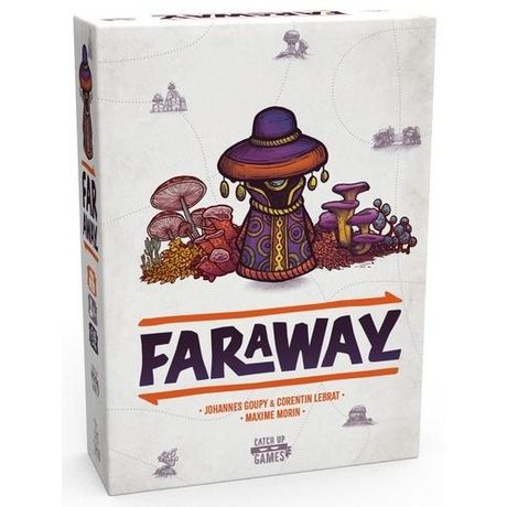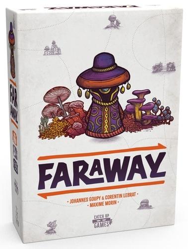 Dans une partie de Faraway, vous jouez 8 cartes devant vous, en une ligne de gauche à droite. Ces cartes représentent les régions que vous visitez lors de votre exploration. Chaque carte vous demande de remplir des conditions pour gagner des points de victoire. En fin de partie, vous réalisez le chemin de retour en comptant vos points dans le sens inverse de pose. Et c'est là tout le sel du jeu. Tout au long de la partie, vos cartes serviront à la fois à vous fixer de nouveaux objectifs et à remplir ceux que vous avez déjà joués. A chaque tour, vous faites votre choix dans votre main de 3. Puis vous complétez votre main grâce à la rivière de cartes. Faraway se jouant en simultané, un astucieux système de priorité accentue encore l'importance de vos décisions. Car choisir en dernier vous laisse moins d'option, réduisant vos possibilités lors des tours suivants.