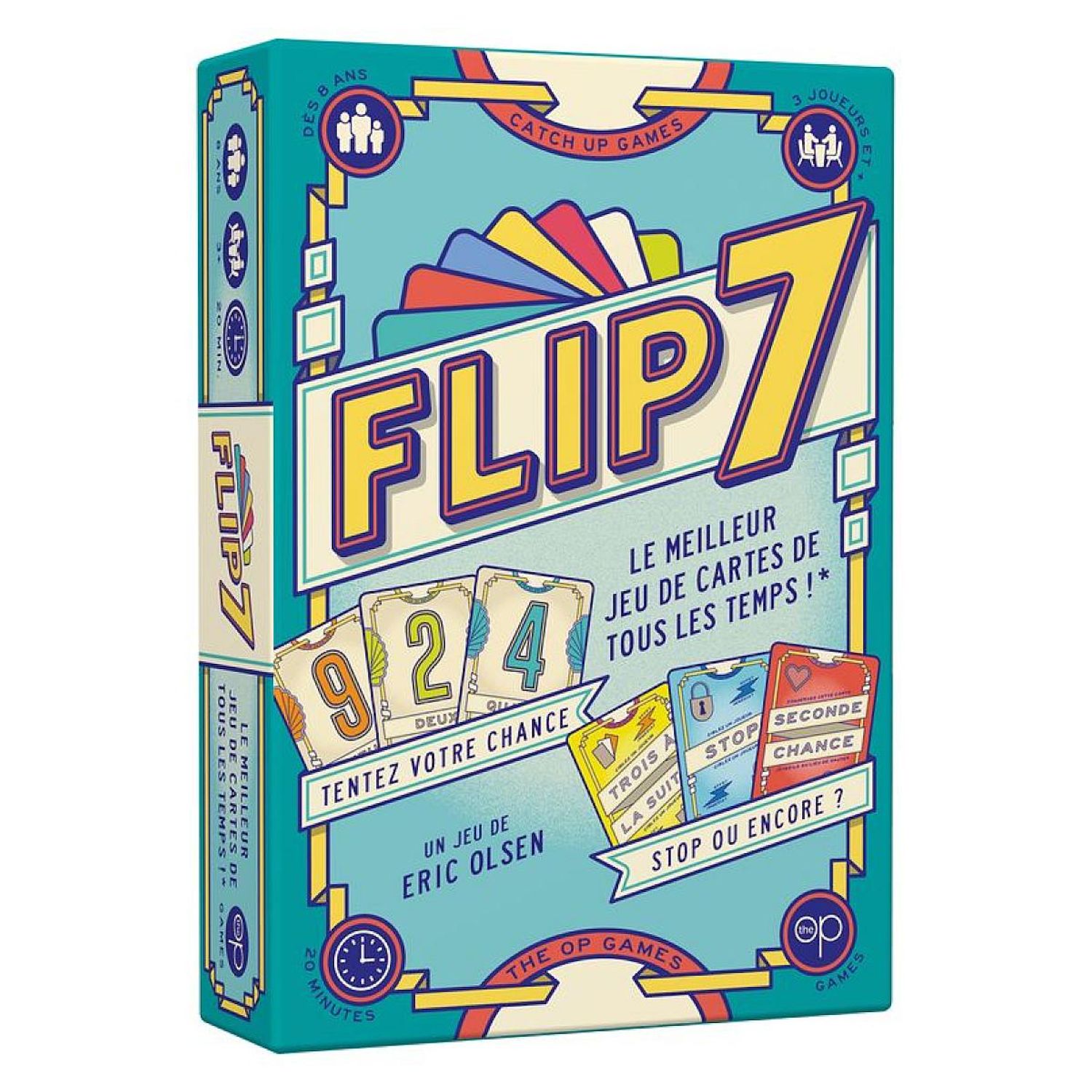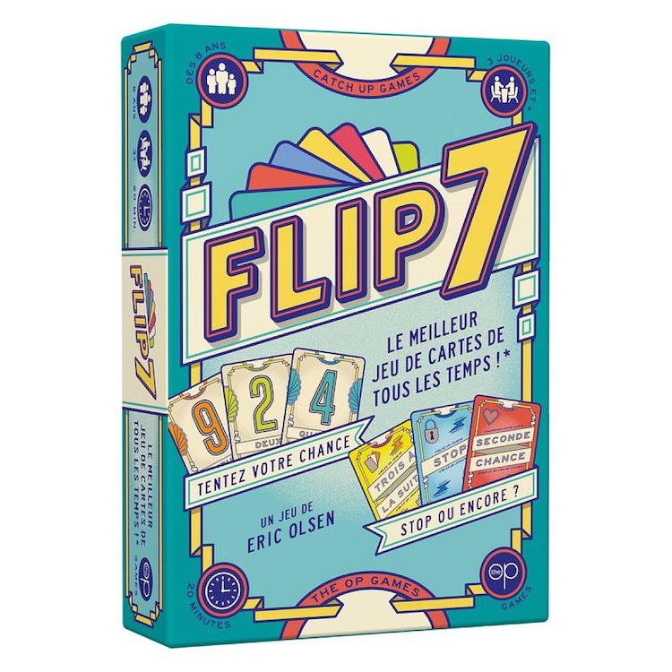 En savoir +Accumulez les cartes au fil des tours pour gagner des points. Mais attention : si vous recevez un numéro que vous avez déjà, vous perdez tout ! Saurez-vous dire stop à temps ?. À chaque manche, collectionnez des cartes une par une pour marquer autant de points que le total de leurs valeurs. Mais vous devrez savoir dire stop avant de recevoir un numéro que vous avez déjà ! Sinon, vous sautez et quittez la manche sans gagner de point? Et plus une carte a un numéro élevé, plus il y en a dans la pioche : le paquet compte une carte 1, et douze cartes 12. Avec un peu de chance, vous pourrez également compter sur des cartes spéciales pour vous protéger, bloquer vos adversaires, ou les obliger à recevoir trois cartes d'un coup. Si vous parvenez à collectionner 7 cartes Numéro différentes, vous réalisez un Flip 7 : vous mettez fin à la manche et gagnez 15 points supplémentaires, sous les yeux ébahis de vos adversaires !. Cumulez vos points de manche en manche : quand un ou plusieurs joueurs atteignent 200 points, la personne avec le plus haut score remporte la partie !