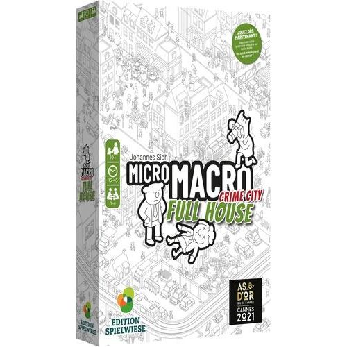 Full House est le second volet de la série MicroMacro : Crime City. C‘est une nouvelle partie de la ville, avec ses 16 enquêtes à mener, qui vous ouvre les bras. Ce jeu est indépendant du premier volet : il n‘est pas nécessaire de posséder ou d‘avoir joué à l‘épisode précédent pour vous lancer dans ces nouvelles affaires ! MicroMacro est un jeu coopératif. Un oeil affûté et un sens de la déduction aiguisé seront vos meilleurs atouts pour coincer ensemble les criminels les plus retors ! Dans ce jeu coopératif, As d'Or jeu de l'année 2021, les joueurs incarnent des détectives qui devront résoudre des affaires criminelles en observant une carte. Les joueurs choisissent une enquête et retournent la première carte. Cette carte vous détaille l'affaire. Prenez ensuite la carte suivante et répondez à la question indiquée. Pour vérifier votre affirmation, retournez la carte. La réponse est au dos ! Continuez de répondre aux questions afin de résoudre l'enquête.