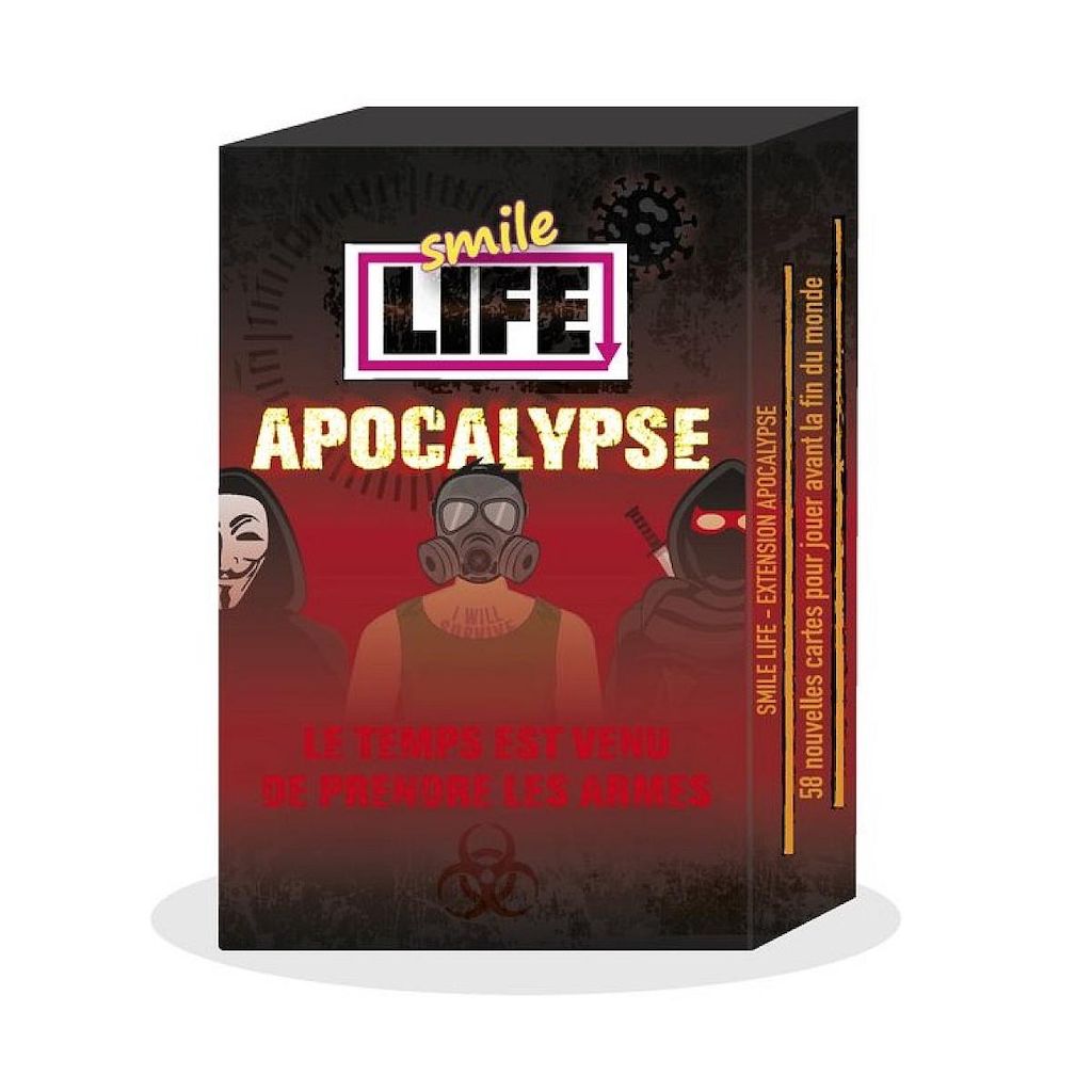 Accumulez les sourires (placés devant vous) pour atteindre le sommet du bonheur :) Avec Smile Life Extension Apocalypse, il ne s'agit plus seulement de sourire, mais de survivre? Affrontez les crises, équipez-vous, combattez vos adversaires? L'heure de l'apocalypse a sonné, et chaque choix pourrait être votre dernier !. L'avis de la Blackrock Family. L'extension Smile Life Apocalypse débarque avec un tas de nouveautés pour des parties encore plus dynamiques, imprévisibles? et carrément fun ! Plongez dans un monde post-apocalyptique et choisissez entre deux niveaux de difficulté : débutant ou avancé. Les nouvelles mécaniques de jeu ouvrent un éventail de stratégies inédites, enrichissant chaque partie. Et bien sûr, tout cela avec l'humour décalé qui fait le charme du jeu, des clins d'?il à la pop culture et une bonne dose de second degré. Attendez-vous à une apocalypse où les rires et les surprises seront au rendez-vous !