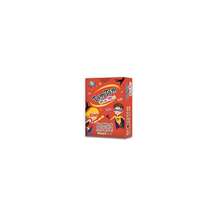 Tam Tam Multimax Niveau 2 Un petit jeu de mathématiques et de rapidité. Il s'agit de retrouver l'unique paire qui existe entre 2 cartes : 1 cartes-nombres et 1 carte-opérations. Tam Tam MultiMax niveau 2 renforce la mémorisation des tables de multiplication de X2 à X9. Chaque table est représentée s