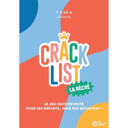 Crack List La Récré est la version enfantine du jeu original Crack List, pensée spécialement pour les plus jeunes. Comme son aîné, les règles sont simples et accessibles à tous : une catégorie est choisie, et chaque joueur, à son tour, doit se débarrasser d'une carte en proposant une réponse dont le premier mot commence par la lettre présente sur sa carte. Par exemple, pour la catégorie parfums de glace , si un joueur a la carte A, il pourrait répondre Abricot , et avec la carte C, il proposerait Chocolat . L'objectif est clair : être le premier à se débarrasser de toutes ses cartes en trouvant des réponses à la fois créatives et rapides. Un jeu dynamique, qui allie stratégie et réflexion rapide, pour des moments de rires, de défis et de convivialité. Parfait pour stimuler l'imagination des enfants tout en leur offrant des parties amusantes et pleines de surprises !. L'avis de la Blackrock Family. Crack List La Récré est bien plus qu'un simple jeu, c'est un véritable pont intergénérationnel qui réunit enfants, parents, ados et grands-parents autour de moments de complicité et de rires. Les parties sont rapides et pleines d'énergie, créant une atmosphère de fun et de convivialité à chaque tour, avec une envie irrésistible de recommencer. Ses règles sont simples, faciles à comprendre et à expliquer, garantissant une prise en main rapide et un plaisir immédiat pour tous les âges. Mais ce n'est pas tout : le jeu regorge de challenge, de quiz, de coups bas et même de stratégie, pour pimenter chaque partie. Sans oublier les fous rires assurés grâce aux centaines de catégories absurdes, fantaisistes et parfois un peu farfelues, spécialement pensées pour les enfants et pour créer des moments mémorables.