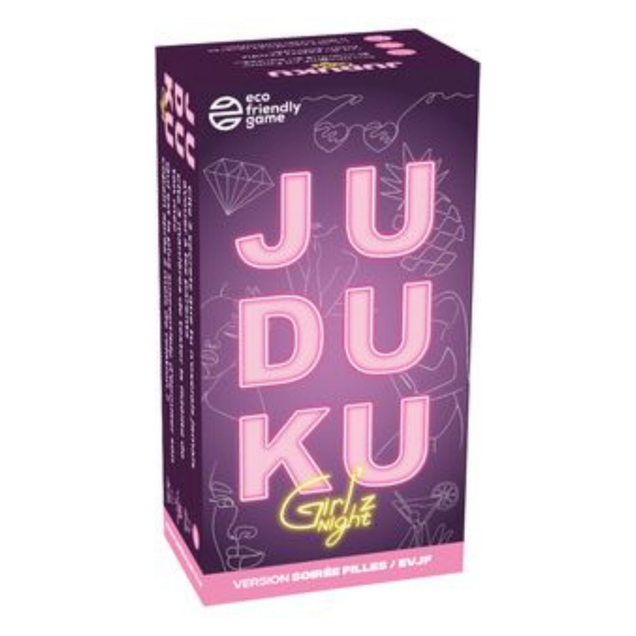 Révèle, en 8 secondes, les pires pensées de tes amies avec des cartes demandant de la spontanéité, peu de morale et aucune retenue ! La première joueuse qui marque 7 points est élue "Queen du Juduku" ! Juduku Girl'z Night est la première édition de Juduku écrite par des filles pour les filles. Le jeu comporte 480 cartes délirantes dont 160 cartes spéciales exclusives aux soirées Girls only. La joueuse au QI le plus faible est désignée Queen du Juduku. Elle pioche la première carte et pose la question à une joueuse qui a 8 secondes pour y répondre. Si les réponses sont acceptées par la Queen du Juduku alors la joueuse qui a répondu marque 1 point. La gagnante devient à son tour la Queen du Juduku. C’est à elle de poser une question à la joueuse suivante, jusqu'à ce qu'une des joueuses marque 7 points et l'emporte.
