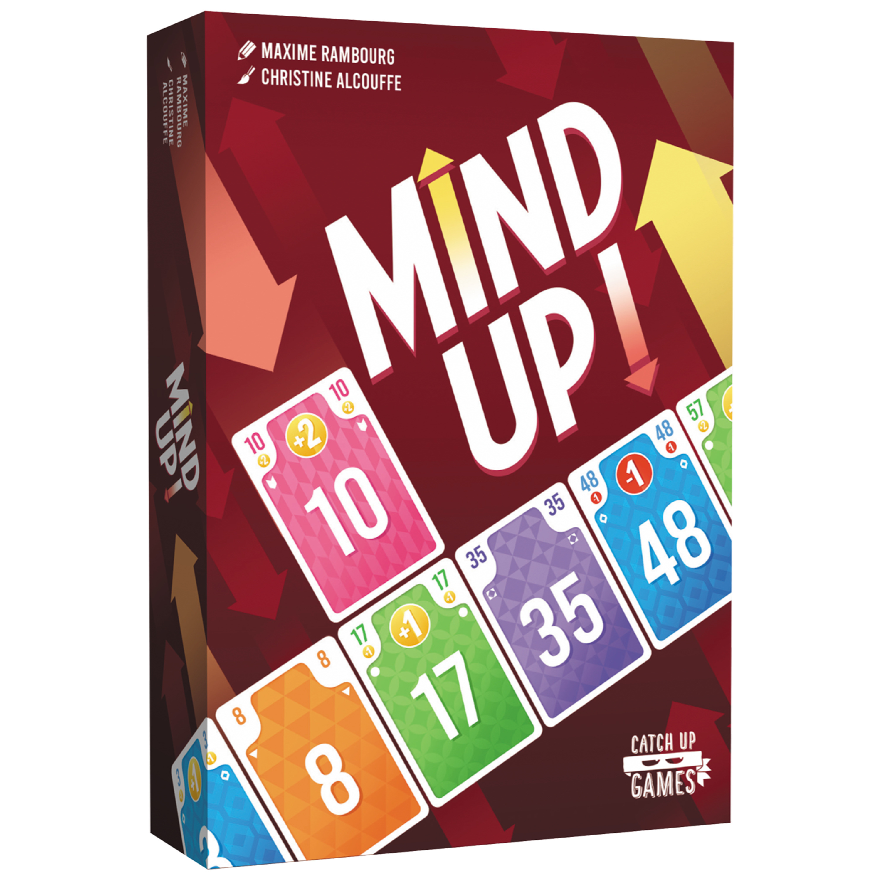 À chaque tour, tout le monde joue simultanément une carte de sa main pour tenter de récupérer celle qui l'intéresse au centre de la table. Les cartes sont altées par ordre croissant, et chacun remporte la carte qui se trouve au niveau de celle qu'il a jouée. La carte que vous gagnez rejoint votre zone de score, en fonction de sa couleur. Mettez la main sur les couleurs associées à vos valeurs les plus élevées pour l'emporter. Derrière son immédiateté et sa grande simplicité d'accès, Mind Up! dévoile au fil des parties de nombreuses subtilités : vos capacités à bien utiliser les cartes de votre main et à deviner quelles cartes vos adversaires convoitent feront la différence ! Après quelques parties, une règle optionnelle ajoutant des objectifs bonus permet d'ajouter encore un peu de piquant et de profondeur tactique au jeu.