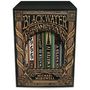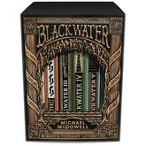 Le coffret Blackwater mesure 110 mm de large, 165 de haut et 125 de profondeur. Il se compose : d'un étui réalisé sur un carton brut de 2 mm recouvert de papier Keaykolour Deep Black de 120 gr/m2, dont l'intérieur est rembordé de Keaykolour Seal de 120 gr/m2. Et d'un bandeau en Keaykolour Deep Black 350 : gr/m2 complètement illustré par Pedro Oyarbide, doré et gaufré. Il contient : les 6 volumes de la série Blackwater (I. : La Crue : / II. : La Digue : / III. : La Maison : / IV. : La Guerre : / V. : La Fortune : / VI. : Pluie). Un sticker. 5 cartes postales inspirées de l'univers créé par Michael McDowell ( Après l'inondation, avril 1919 , La scierie, octobre 1919 , Message aux ouvriers, 1921 , Lake Pinchona, 1944 , Gavin Pond, 1955 ). Un bon point Zaddie Sapp. Un marque-page Blackwater. Un écusson tissé et thermocollant du Blackwater Fishing Club .