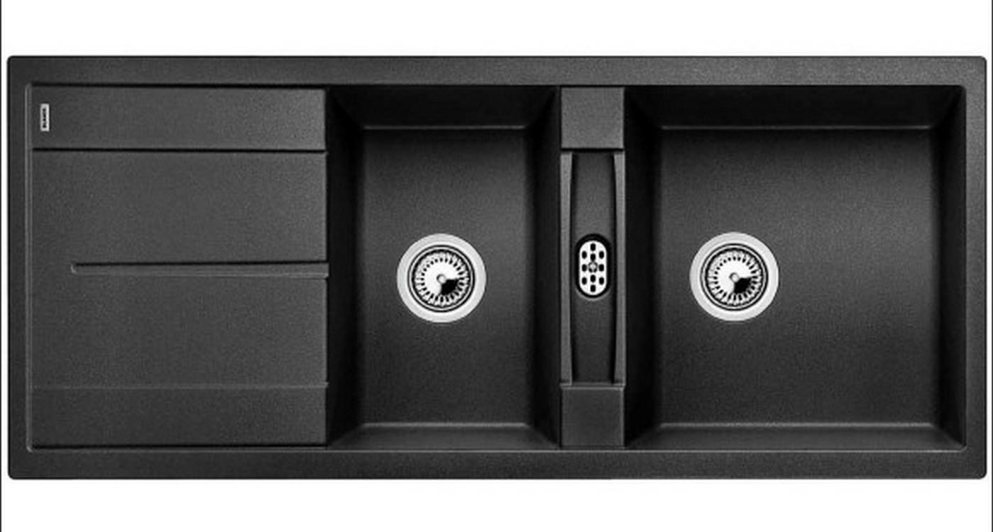 Blanco 513267 Evier à encastrer Blanco 513267, Evier Métra 8S Silgranit PuraDur II.- 2 grandes cuves très profondes + égouttoir cannelé.- Pour sous-meuble de 80 cm.- Livré avec bondes à panier 90 mm manuelles inox et siphon 40 mm à culot démontable avec 1 prise machine à laver. Coloris anthracite.