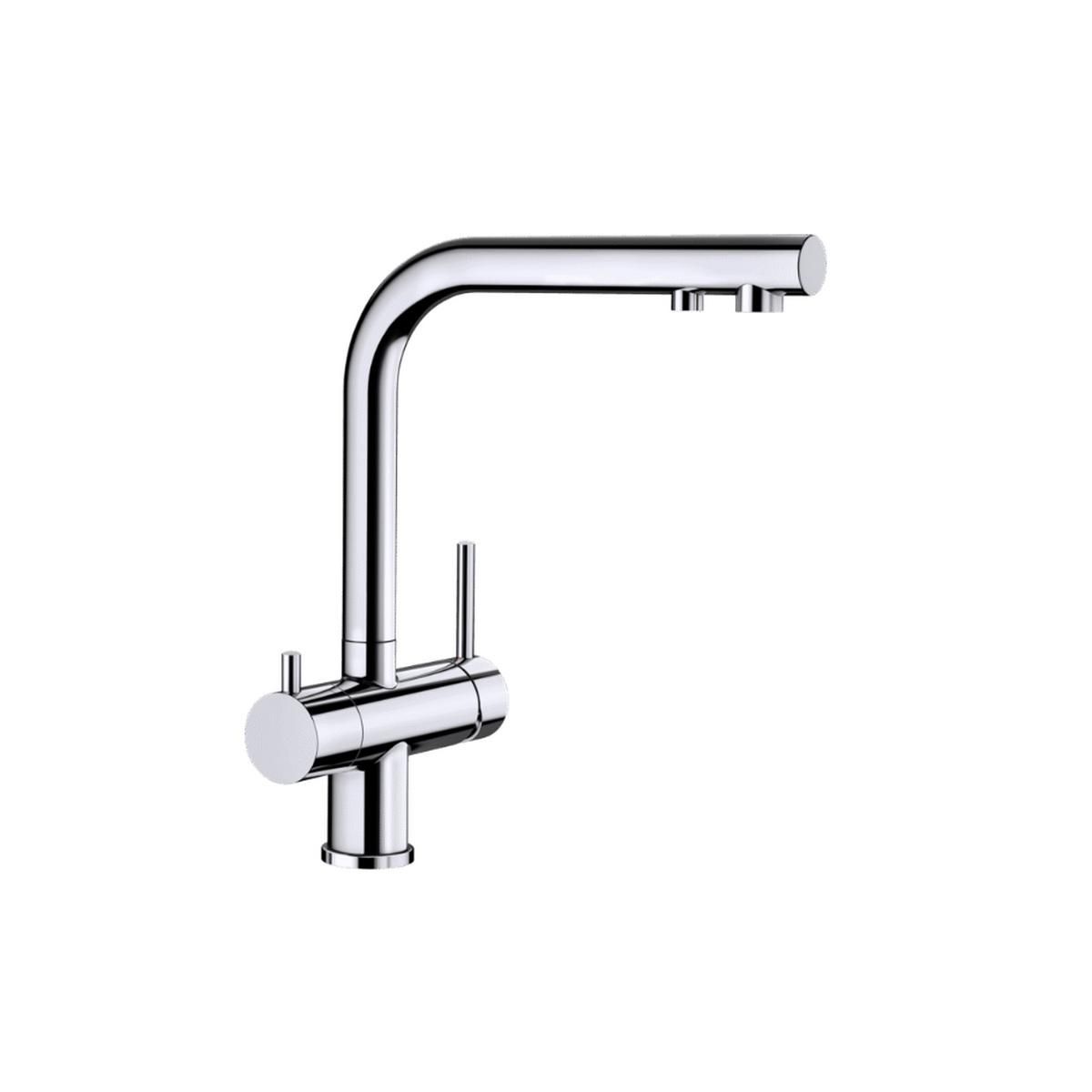 Blanco 523128 Mitigeur Fontas II 523128 de Blanco.Mitigeur 3 en 1 confortable avec levier d'eau chaude/froide à droite et levier d'eau filtrée à gauche.Circuit d'eau séparé avec robinet supplémentaire pour l'eau filtrée – sans mélange avec l'eau du réseau.Gain de place et pratique : grâce au robinet