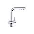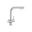 Mitigeur 3 en 1 confortable avec levier d'eau chaude/froide à droite et levier d'eau filtrée à gauche.