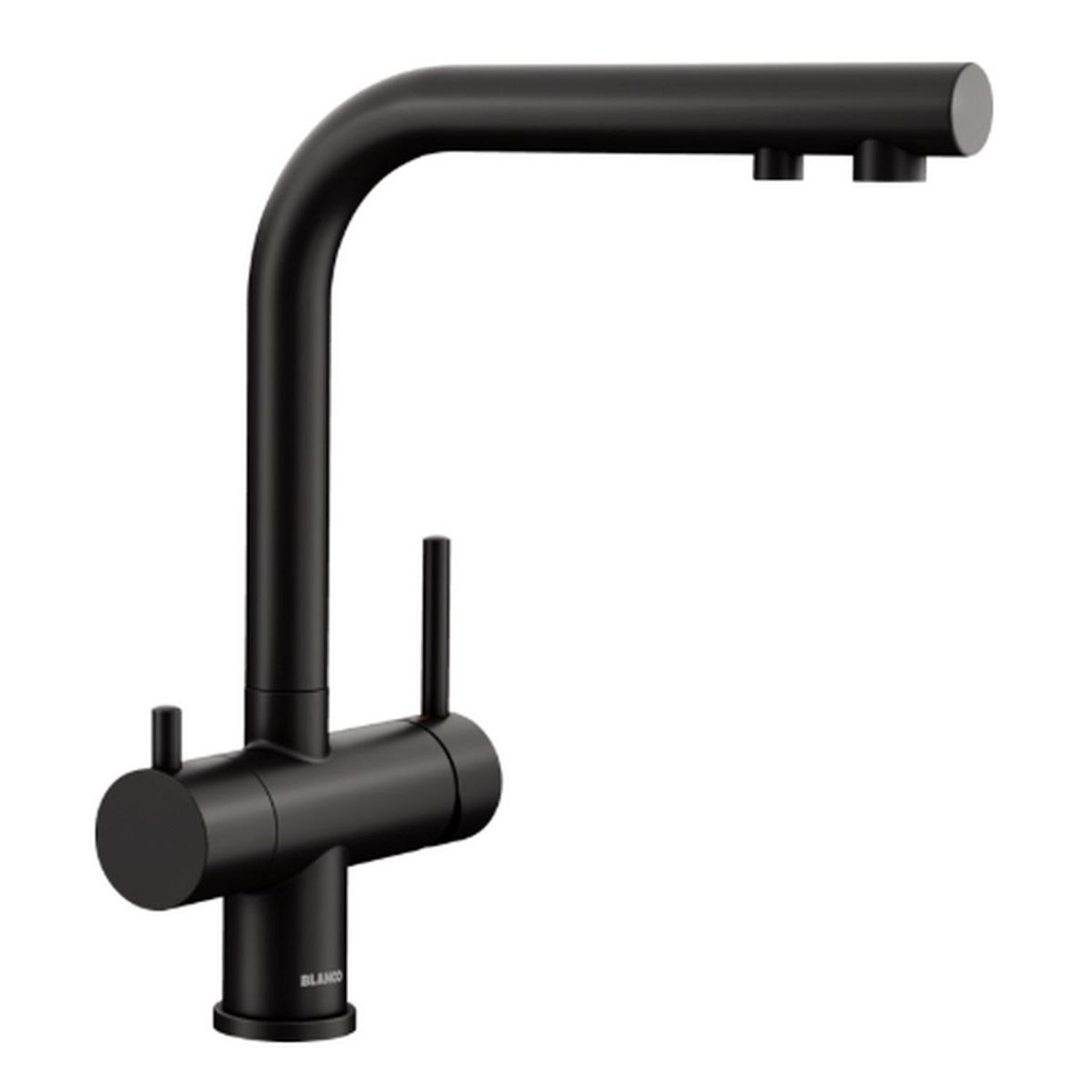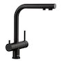 Blanco 526670 Robinet mitigeur 3 en 1 confortable de Blanco 526670 avec levier d'eau froide et chaude à droite, levier d'eau filtrée à gauche. Finition de surface noire mate pour s'harmoniser parfaitement avec l'environnement. Circuit d'eau séparé avec robinet supplémentaire pour l'eau filtrée – san