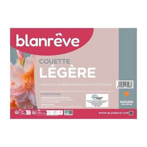 Découvrez la couette légere BLANREVE de 140 x 200 cm. Avec sa microfibre de 83g/m² et ses motifs imprimés, elle assure un confort optimal pour des nuits douces. Idéale pour les saisons chaudes, elle vous enveloppe de douceur et de légereté.