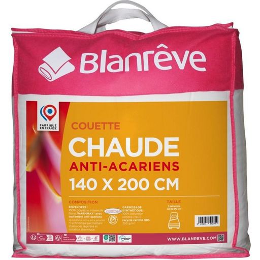 Couette chaude anti acariens WARMMAX 350 g/m²