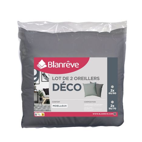 En savoir +Lot de 2 oreillers bicolore en microfibre, confort moelleux. Oreiller une face gris clair; une face gris foncé.