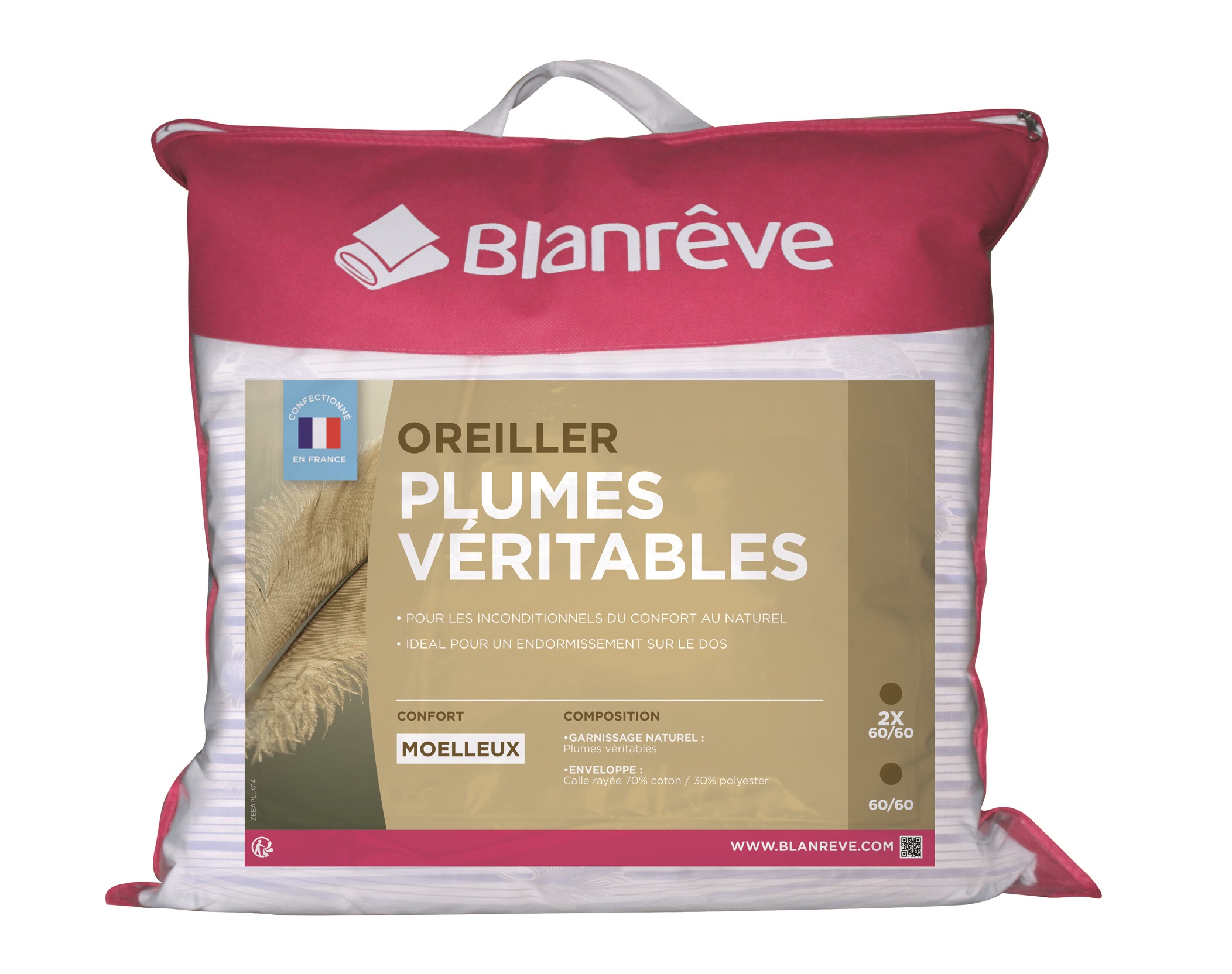 Pour les inconditionnels du confort naturel, ce lot de 2 oreillers moelleux en plumes véritables est fait pour vous !