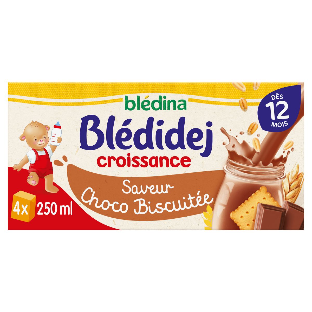 Expert de la diversification alimentaire depuis plus de 100 ans, Blédina vous accompagne pour tous les repas de votre bébé. Notre mission ? Eveiller sa curiosité pour le manger vrai, grâce à plus de 250 recettes conçues par des nutritionnistes et parfaitement adaptées à ses besoins. BLEDIDEJ® de BLEDINA, une gamme pour régaler bébé au petit déjeuner. 4 briques prêtes à l'emploi Saveur Choco Biscuité dès 12 mois. Pour varier les plaisirs, faites découvrir de temps en temps à votre bébé la douceur et les différentes saveurs de nos recettes Bledidej® ! Blédidej® c'est un petit déjeuner gourmand dans un format pratique prêt à l'usage !