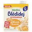 BLEDIDEJ® de BLEDINA, une gamme pour régaler bébé au petit déjeuner dès 12 mois. Des recettes onctueuses dans un emballage pratique avec un bouchon refermable. Un format qui permet d'ajuster la quantité en fonction de l'appétit de bébé*. *La portion recommandée à 12 mois est de 250 mL.