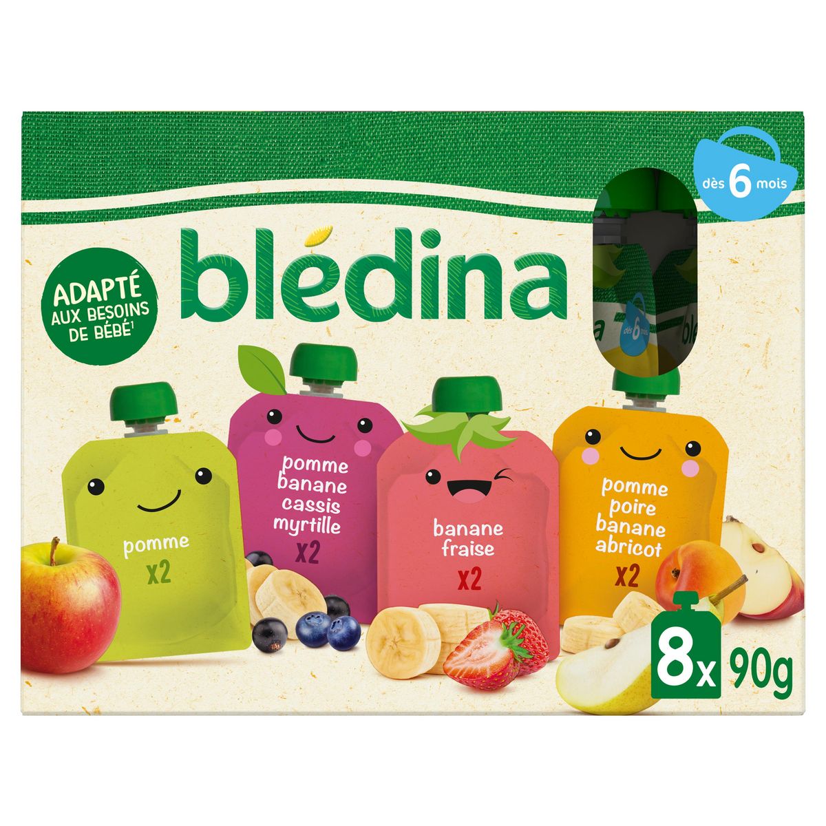 Expert de la diversification alimentaire depuis plus de 100 ans, Blédina vous accompagne pour tous les repas de votre bébé. Notre mission ? Eveiller sa curiosité pour le manger vrai, grâce à plus de 250 recettes conçues par des nutritionnistes et parfaitement adaptées à ses besoins. Blédina vous propose un assortiment de délicieuses purées de fruits pour faire découvrir de nouvelles saveurs à bébé. Et dans un format gourde pratique à emporter !