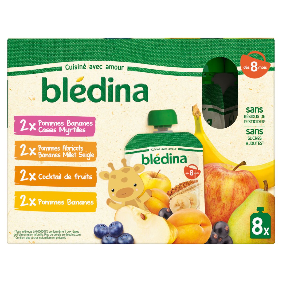 Expert de la diversification alimentaire depuis plus de 100 ans, Blédina vous accompagne pour tous les repas de votre bébé. Notre mission ? Eveiller sa curiosité pour le manger vrai, grâce à plus de 250 recettes conçues par des nutritionnistes et parfaitement adaptées à ses besoins. Blédina vous propose un assortiment de délicieuses purées de fruits pour faire découvrir de nouvelles saveurs à bébé. Et dans un format gourde pratique à emporter !