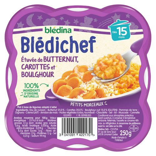 Blédichef assiette butternut carotte et boulghour dès 15 mois