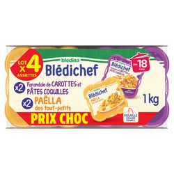 Blédichef assiette carottes pâtes coquilles et paëlla dès 18 mois
