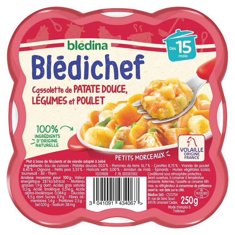 Blédichef assiette cassolette de papate douce légumes et poulet dès 15 mois