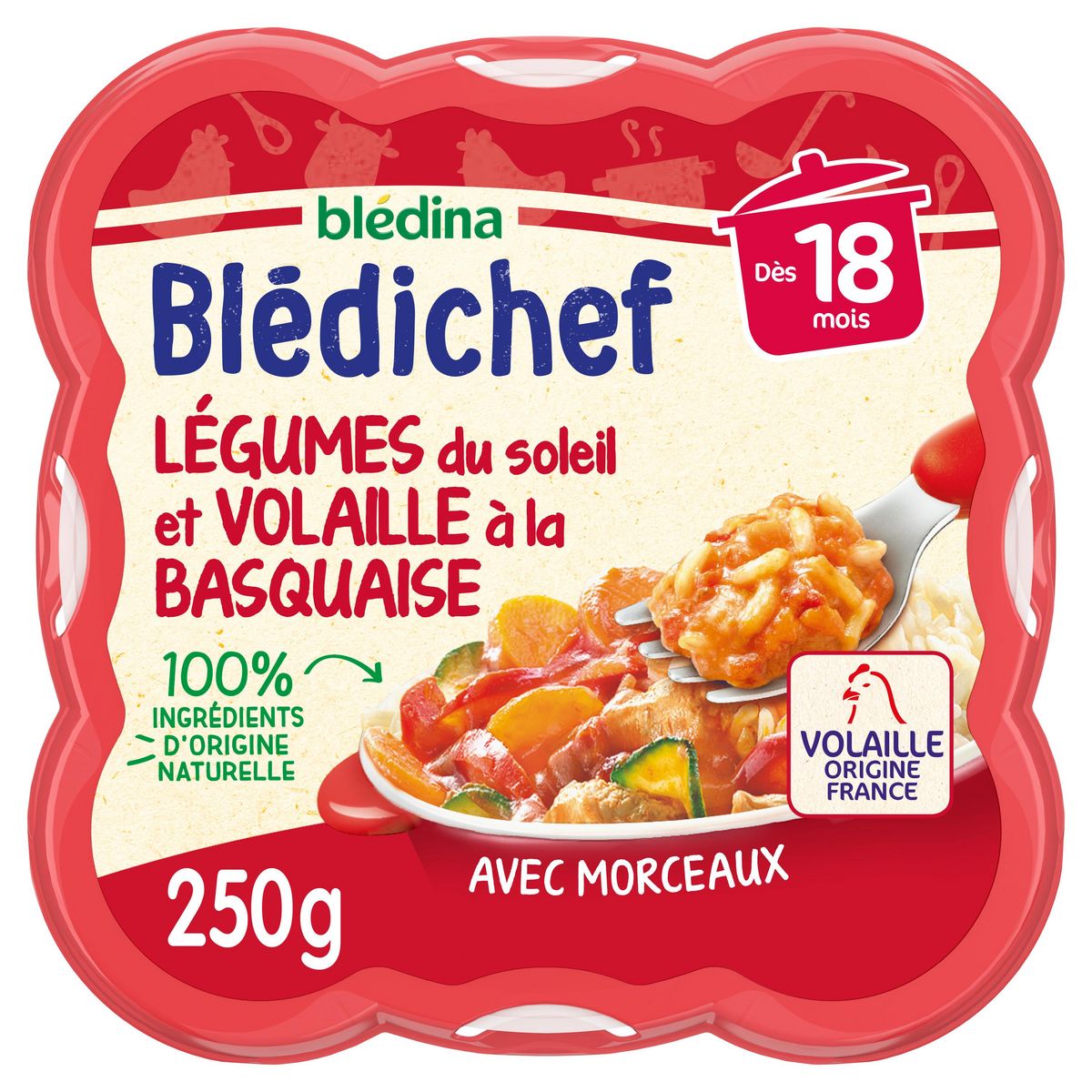 Blédichef Assiette de légumes du soleil et volaille dès 18 mois