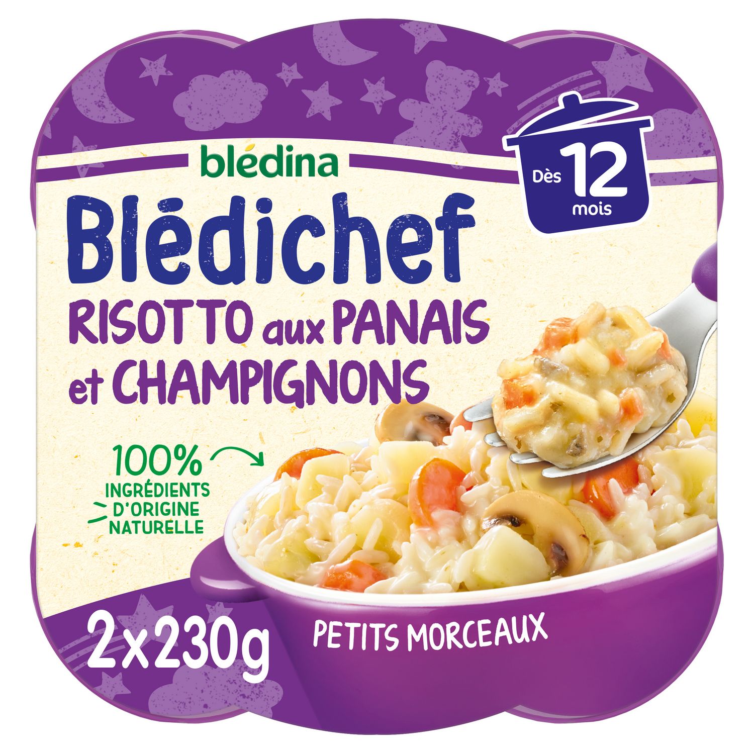 Expert de la diversification alimentaire depuis plus de 100 ans, Blédina vous accompagne pour tous les repas de votre bébé. Notre mission ? Eveiller sa curiosité pour le manger vrai, grâce à plus de 250 recettes conçues par des nutritionnistes et parfaitement adaptées à ses besoins. Blédina Blédichef - Risotto Panais Champignons dès 12 mois. Un délicieux risotto aux panais et aux champignons, pour une recette BLEDICHEF tout en douceur.