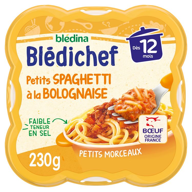 Blédichef, des petits plats de grands spécialement concoctés pour répondre aux besoins des bébés : -Des recettes cuisinées en France -Des morceaux qui évoluent selon l'âge de bébé -Sans Sel Ajouté