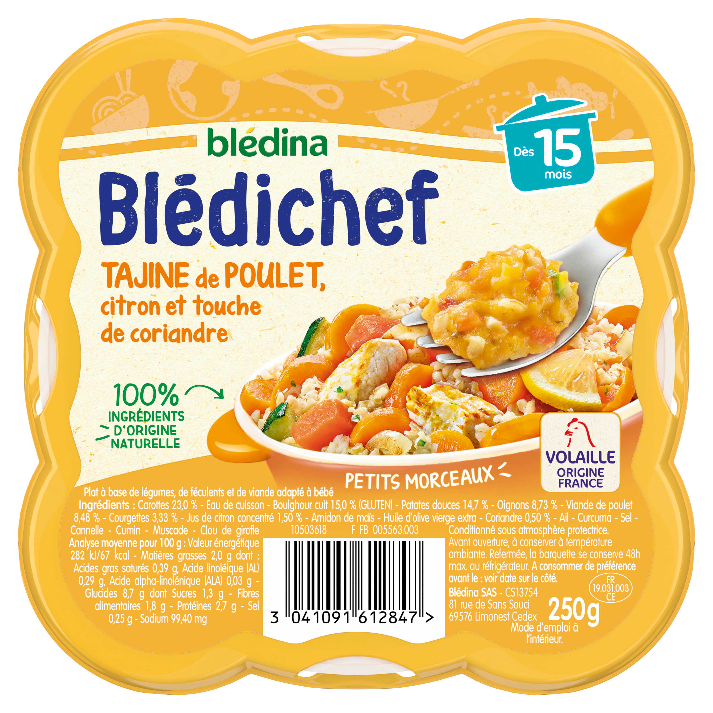 Blédichef, des petits plats de grands spécialement concoctés pour répondre aux besoins des bébés : -Des recettes cuisinées en France -Des morceaux qui évoluent selon l'âge de bébé -100% Ingrédients d'Origine Naturelle -Sans Sel Ajouté