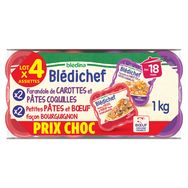 Blédichef assiettes carottes pâtes coquilles et pâtes bœuf façon bourguignon dès 18 mois
