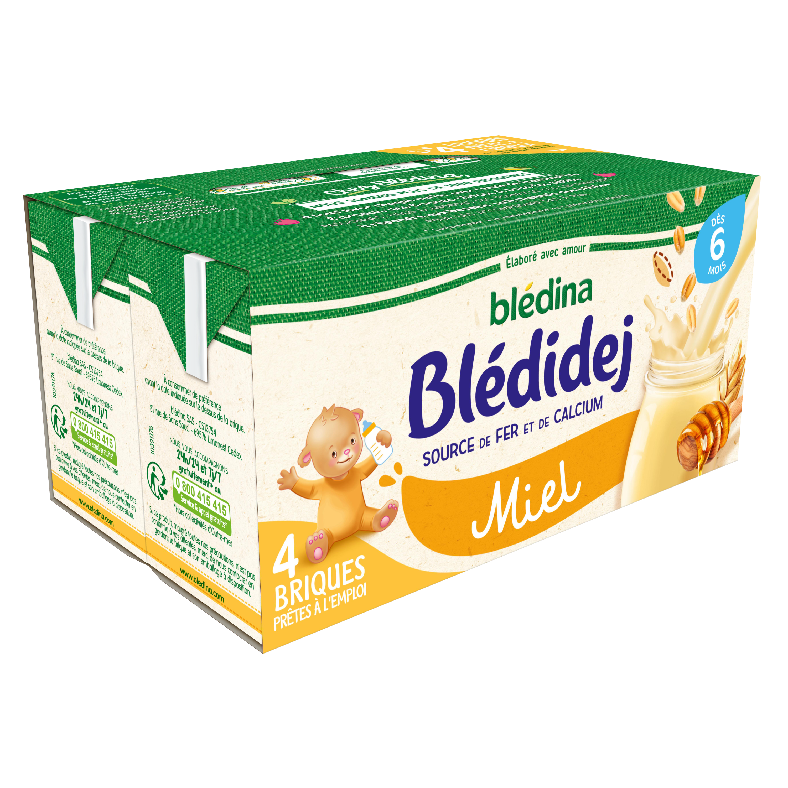 BLEDIDEJ® 4x250ml Miel Dès 6 mois. Pour varier les plaisirs, faites découvrir de temps en temps à votre bébé la douceur et les différentes saveurs de nos recettes Bledidej® ! Blédidej® c'est un petit déjeuner gourmand dans un format pratique prêt à l'usage ! Céréales lactées pour bébés.