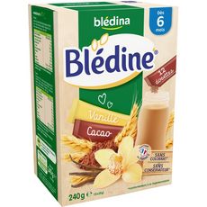 BLEDINE® DOSETTE Vanille / Cacao Dès 6 mois, les céréales infantiles Blédine® offrent à bébé un moment plaisir avec des recettes gourmandes et savoureuses pour poursuivre la découverte des goûts. Blédine® garantit un produit fabriqué en Auvergne-Rhône-Alpes depuis 1906.