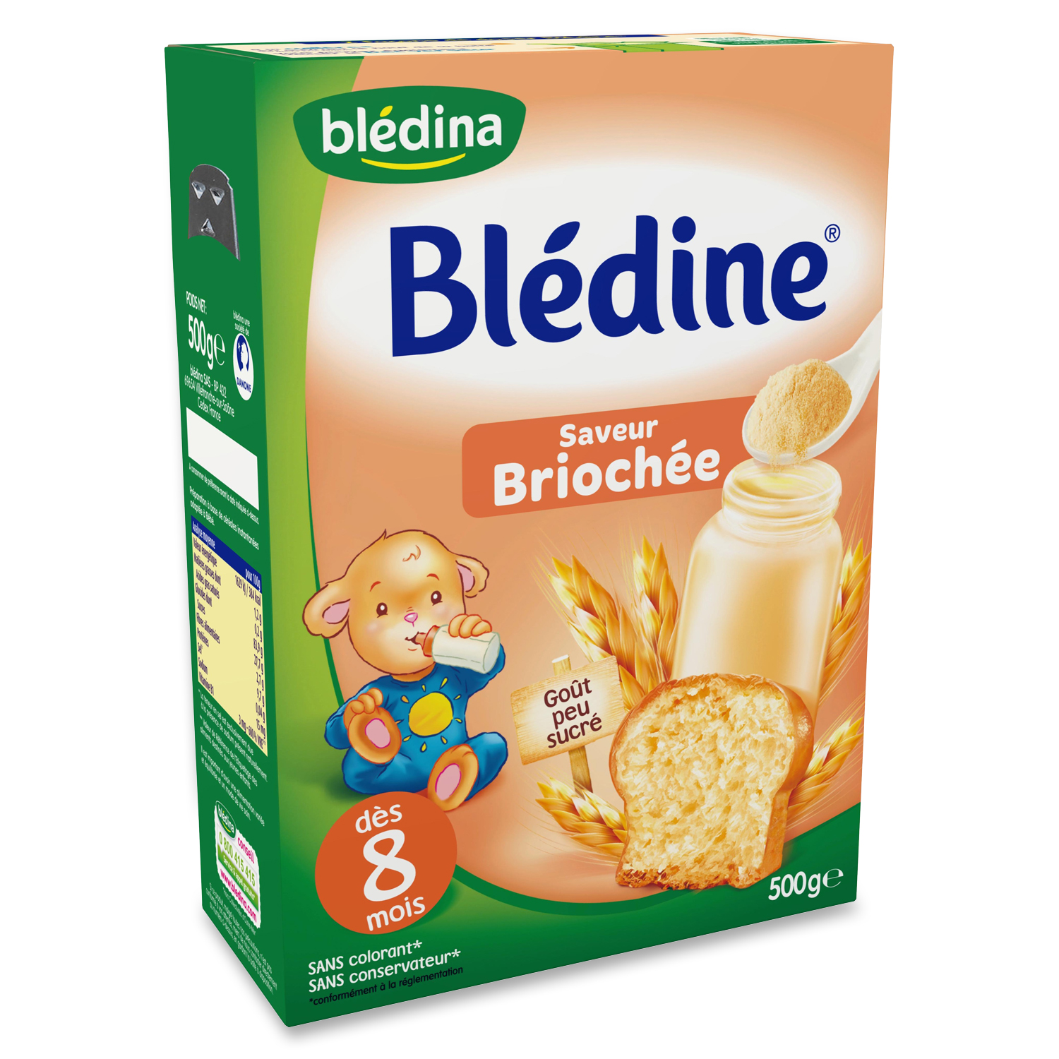 Dès 8 mois, les céréales infantiles Blédine® offrent à bébé un moment plaisir avec des recettes gourmandes et savoureuses pour poursuivre la découverte des goûts. Blédine® garantit un produit fabriqué en Rhône-Alpes  depuis 1906.
