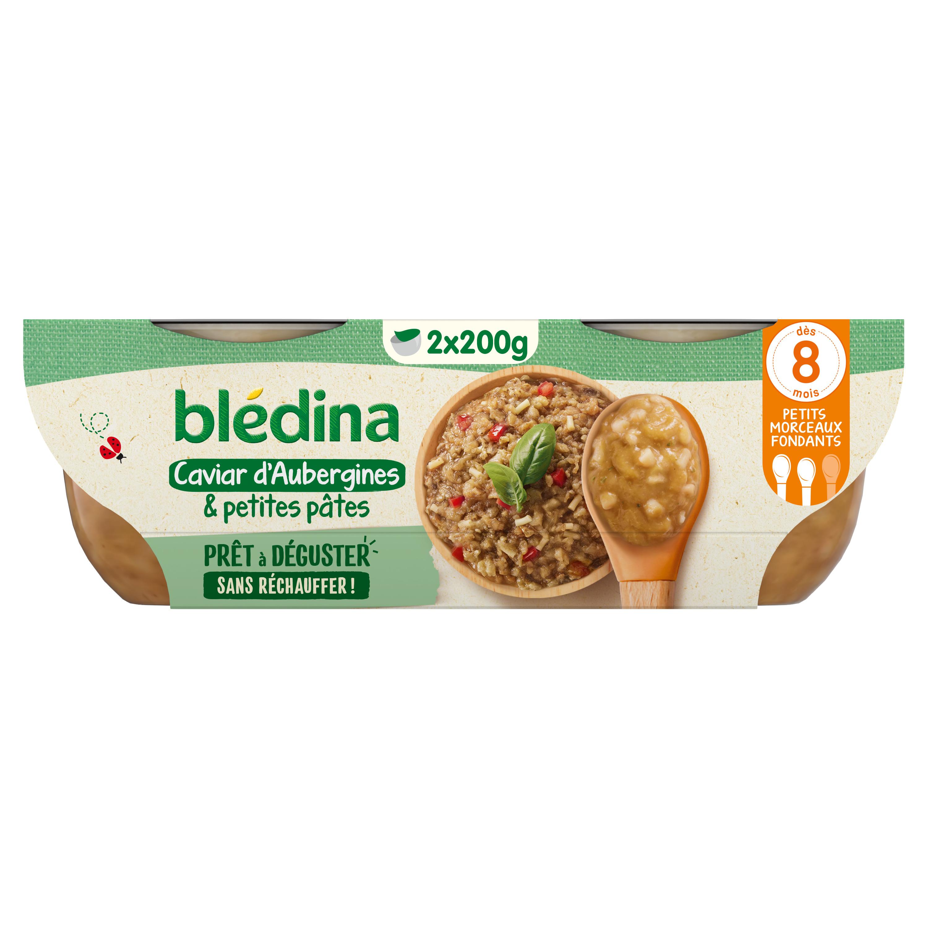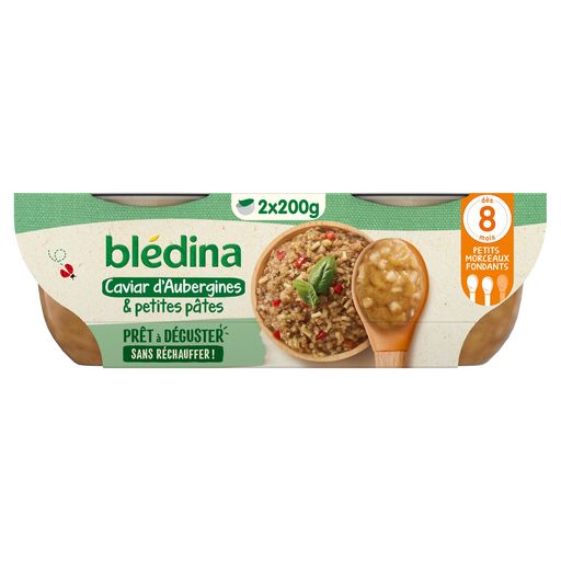 Expert de la diversification alimentaire depuis plus de 100 ans, Blédina vous accompagne pour tous les repas de votre bébé. Notre mission ? Eveiller sa curiosité pour le manger vrai, grâce à plus de 250 recettes conçues par des nutritionnistes et parfaitement adaptées à ses besoins. BLEDINA - Caviar d'aubergines et petites pâtes. Prêt à déguster, sans réchauffer à la texture moulinée spécialement revisitée et adaptée à votre bébé. *Conformément à la réglementation de l'alimentation infantile.