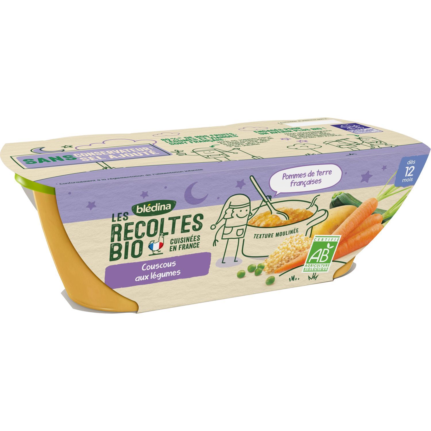 BLEDINA LES RECOLTES BIO Couscous aux Légumes 2x200g Dès 12 Mois Purée de légumes adaptée à bébé.