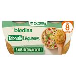 Expert de la diversification alimentaire depuis plus de 100 ans, Blédina vous accompagne pour tous les repas de votre bébé. Notre mission ? Eveiller sa curiosité pour le manger vrai, grâce à plus de 250 recettes conçues par des nutritionnistes et parfaitement adaptées à ses besoins*. BLEDINA - Taboulé de petits légumes Découvrez notre gamme de petits plats Prête à Déguster SANS RECHAUFFER ! Des recettes spécialement revisitées et adaptées* à votre bébé, avec des petits morceaux fondants pour bébé dès 8 mois. *Conformément à la réglementation de l'alimentation infantile.