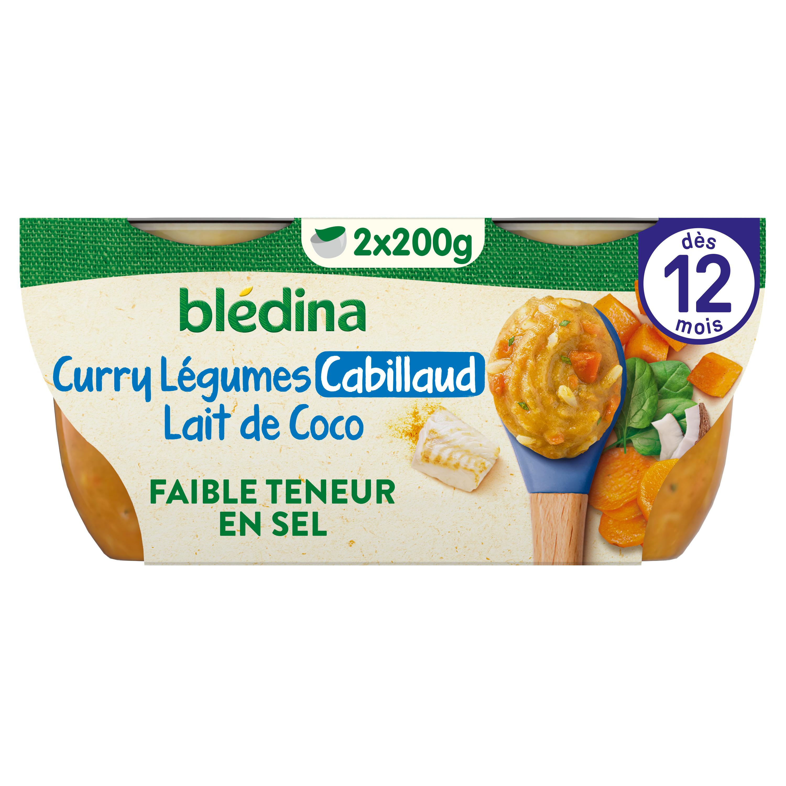 Découvrez notre recette Blédina Curry de Légumes & Cabillaud au lait de coco, avec des morceaux fondants pour faire découvrir de nouvelles textures à bébé dès 12 mois !