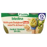 Découvrez notre recette Blédina Petits pois, Boulghour, poulet et sa noisette de beurre, avec des petits morceaux fondants pour faire découvrir de nouvelles textures à bébé dès 12 mois et lui apprendre à bien mâcher !