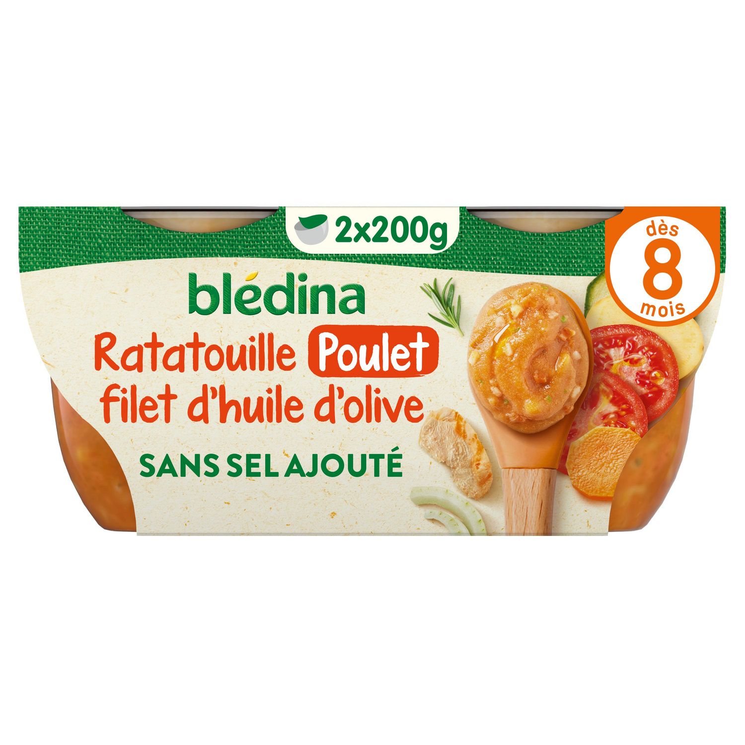 Découvrez notre recette Blédina Ratatouille, Poulet & filet d'huile d'olive, avec des petits morceaux fondants pour faire découvrir de nouvelles textures à bébé dès 8 mois et lui apprendre à bien mâcher !