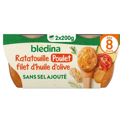 Expert de la diversification alimentaire depuis plus de 100 ans, Blédina vous accompagne pour tous les repas de votre bébé. Notre mission ? Eveiller sa curiosité pour le manger vrai, grâce à plus de 250 recettes conçues par des nutritionnistes et parfaitement adaptées à ses besoins*. NOUVELLE RECETTE : Blédina Ratatouille, Poulet & filet d'huile d'olive dès 8 mois. Découvrez notre gamme de petits plats pour éveiller la gourmandise de bébé et le préparer à bien mâcher : à chaque âge sa texture ! *Selon la réglementation de l'alimentation infantile