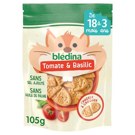 Expert de la diversification alimentaire depuis plus de 100 ans, Blédina vous accompagne pour tous les repas de votre bébé. Notre mission ? Eveiller sa curiosité pour le manger vrai, grâce à plus de 250 recettes conçues par des nutritionnistes et parfaitement adaptées à ses besoins. Les Crousti à dévorer de BLEDINA c'est la gamme spécialement développée pour faire patienter les grands bébés. Des recettes gourmandes aux céréales et aux légumes à manger avec les doigts pour des moments ludiques. Les Crousti ont : - Une forme adaptée aux petites mains de bébé - Un concept de puzzle pour faire patienter bébé et développer sa motricité - Une texture cracker qui fond en bouche - Un bon goût de céréales, de tomate et de basilic. C'est toujours assis, le dos droit, sans distraction et sous la surveillance permanente d'un adulte que votre bébé peut savourer les Crousti à dévorer tomate et basilic. BÉBÉ est-il prêt ? Vous pouvez donner les Crousti à votre bébé s'il : - sait se déplacer seul - mange des morceaux plus ou moins fondants - mange un quignon de pain seul