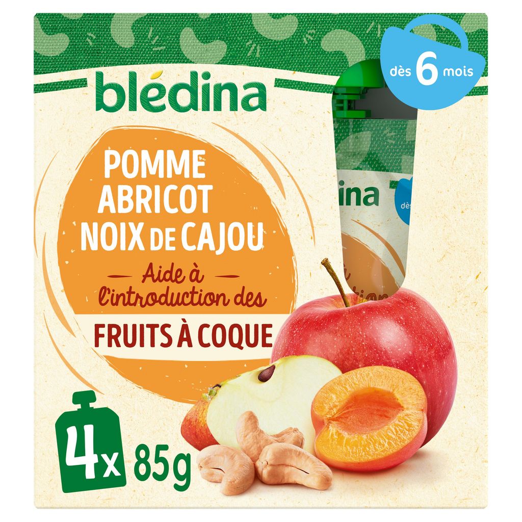 Expert de la diversification alimentaire depuis plus de 100 ans, Blédina vous accompagne pour tous les repas de votre bébé. Notre mission ? Eveiller sa curiosité pour le manger vrai, grâce à plus de 250 recettes conçues par des nutritionnistes et parfaitement adaptées à ses besoins. Chez Blédina, nous nous engageons en innovant pour proposer des recettes uniques pour la diversification alimentaire des bébés. Blédina vous accompagne avec ses recettes uniques pour introduire les fruits à coque dans l'alimentation de bébé ! Découvrez notre nouvelle recette gourmande associant la Pomme, l'Abricot et la Noix de Cajou, dans un format gourde. Aujourd'hui, il n'est plus nécessaire que bébé ait 12 ou 36 mois avant de lui en proposer sous une forme adaptée.