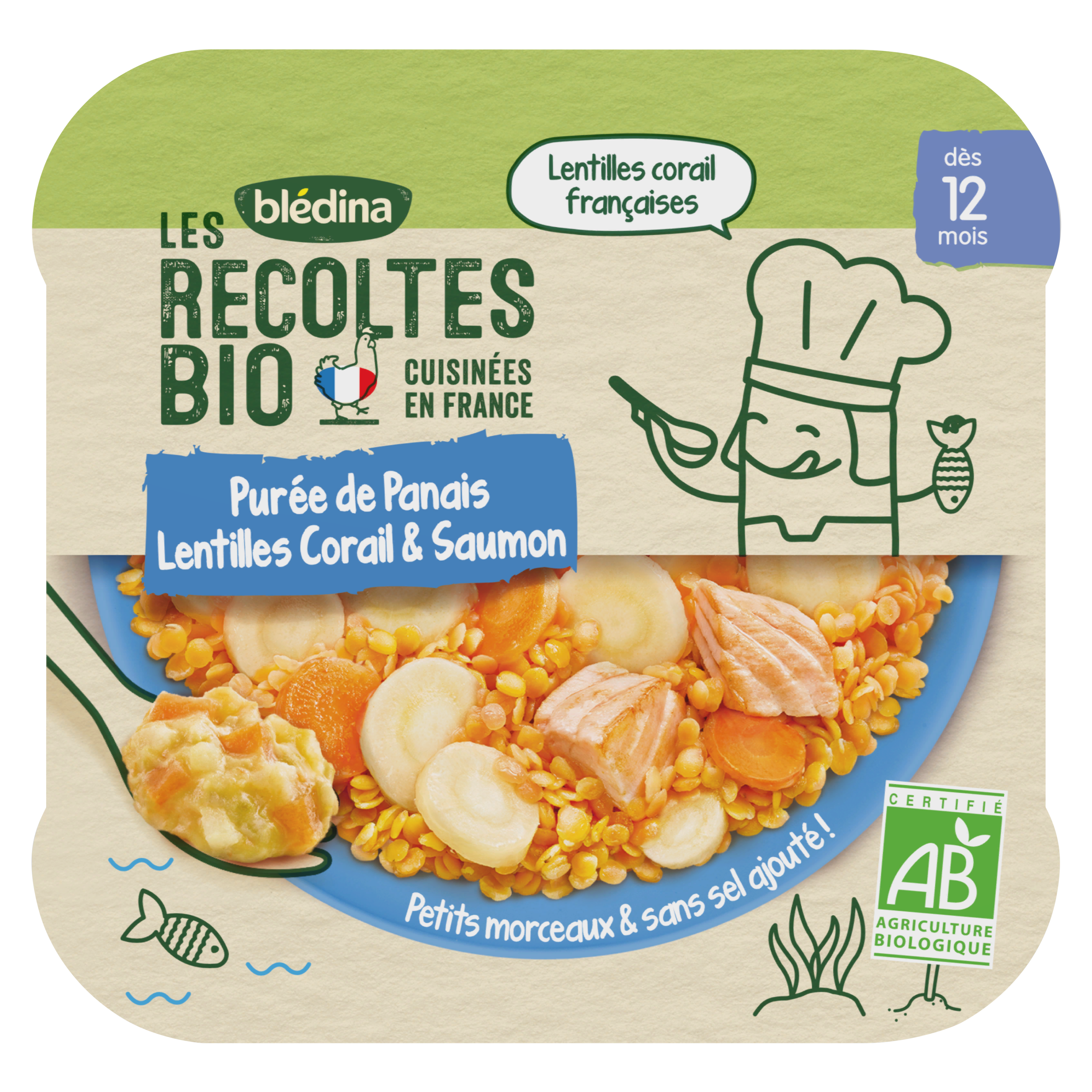 Les récoltes bio assiette purée de panais lentilles corail bio au saumon dès 12 mois